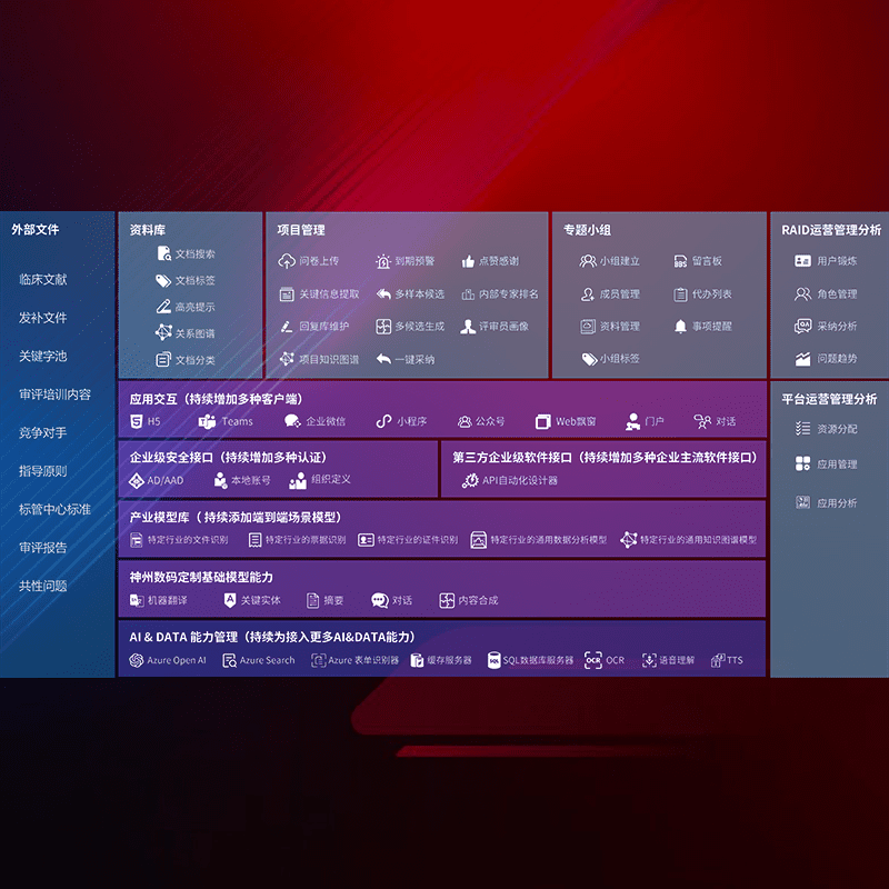 医疗器械产品上市前,,,,要熟悉严格与繁复评审标准,,整理分析监管机构指导文件中的海量信息。。。企业急需一个智能化解决方案,,,,提升知识管理效率,,,,提高评审通过率,,以提升其市场竞争力。。。。